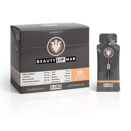 woda oczyszczona, kolagen rybi Naticol®, fosfolipidy z lecytyny słonecznikowej, substancja utrzymująca wilgoć: glicerol, olej z owoców plamy sabałowej (Serenoa repens, Bartram, Small) standaryzowany na zawartość 85% kwasów tłuszczowych, L-arginina, olej z awokado, witamina C (L-askorbinian sodu), kwas pantotenowy (D-pantotenian wapnia), cynk (glukonian cynku), witamina E (D-alfa-tokoferol), naturalny aromat, biotyna (D-biotyna), selen (L-selenometionina).